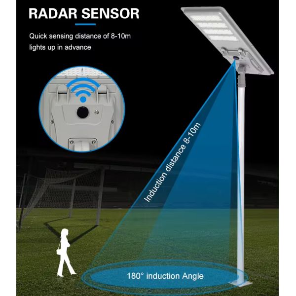 Our advanced solar street light represents the latest in sustainable, high-performance outdoor lighting. Designed to excel in public areas, roads, gardens, and parking lots, it incorporates state-of-the-art battery technology with new-generation batteries supporting over 2000 recharge cycles. This robust energy storage not only ensures long-lasting performance and minimal maintenance but also guarantees reliable operation under varying weather conditions. With its intelligent design, the light automatically adapts to dusk-to-dawn cycles, enhancing safety and energy efficiency.